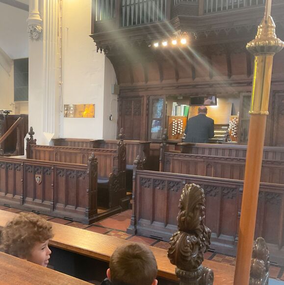 Father Martin explained about the history of the church which was built in Victorian times. The children were excited to learn that the pews they sat on were the original ones from 160 years ago. It was exciting for the children to imagine themselves sitting where Victorian children had once sat. Father Martin played the organ, demonstrating how it can be played softly or loudly.