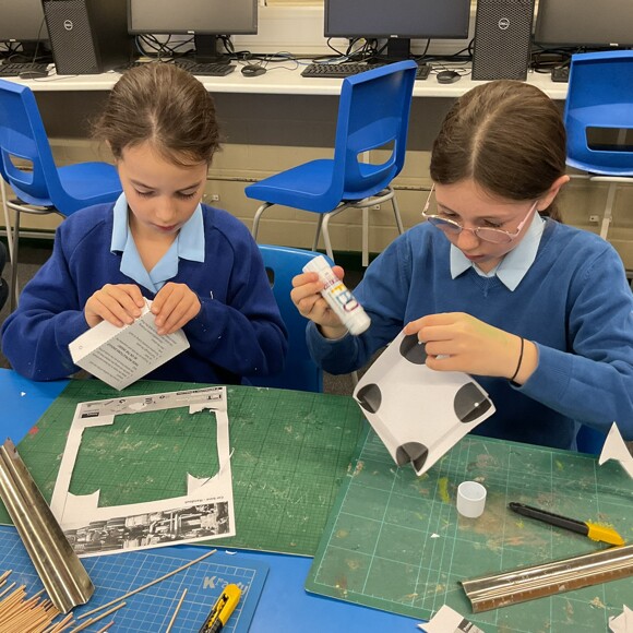 This week, pupils built basic model cars using craft knives and added cardboard wheels with a laser printer. They showed resilience when challenged to modify 2D drawings, considering friction, drag and downforce.