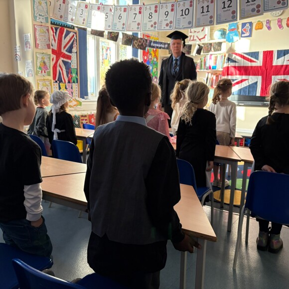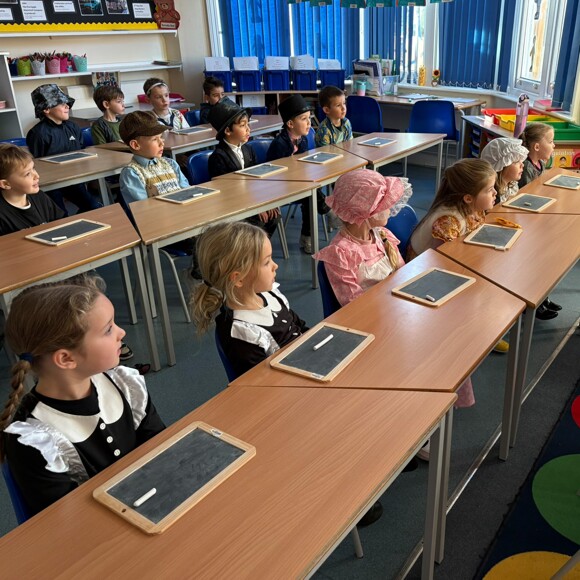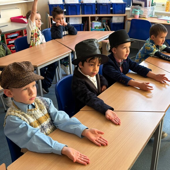 The morning began with all the seriousness of a Victorian schoolroom. The children sat neatly in rows, working in silence, before receiving a visit from a senior master (aka Mr Baguley!) who checked their hands for cleanliness and tested their Maths skills. The children entered into the spirit brilliantly and the teachers were all impressed by their mathematical knowledge and focus.