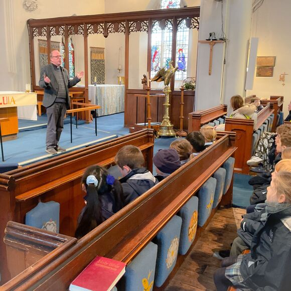 Father Martin explained about the history of the church which was built in Victorian times. The children were excited to learn that the pews they sat on were the original ones from 160 years ago. It was exciting for the children to imagine themselves sitting where Victorian children had once sat. Father Martin played the organ, demonstrating how it can be played softly or loudly.