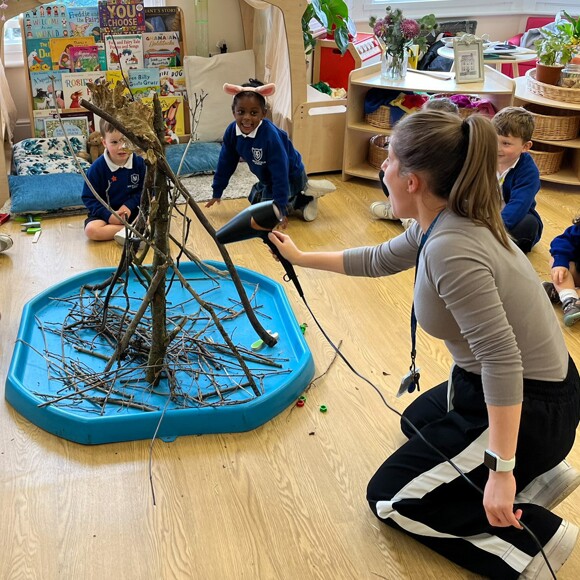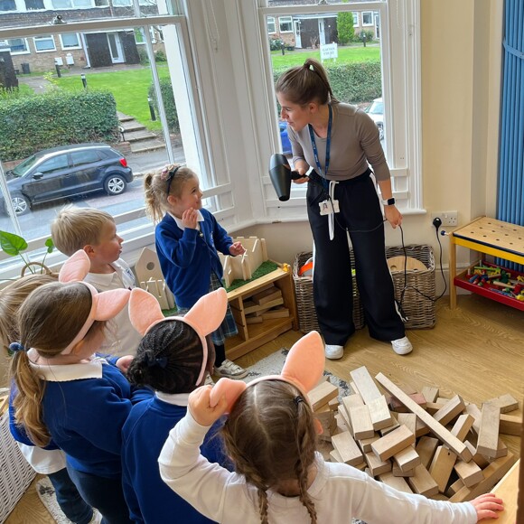 Nursery have been having a fantastic time exploring STEAM through storytelling! Recently, they recreated the classic tale of The Three Little Pigs, building houses out of straw, sticks and bricks. The excitement peaked when the "Big Bad Wolf" arrived - played by a hairdryer - to test the strength of each house.