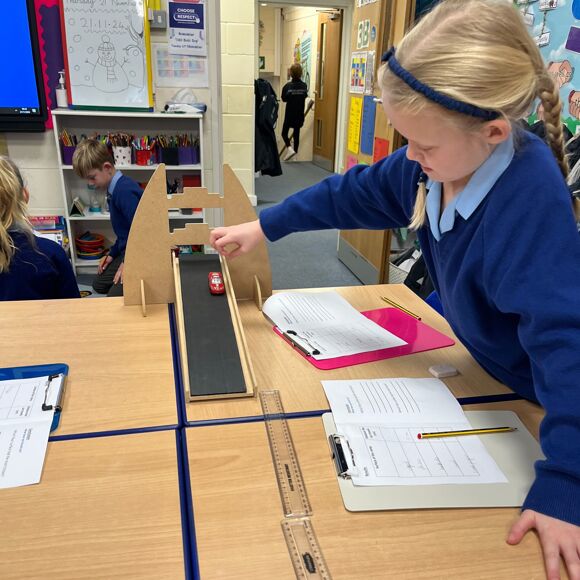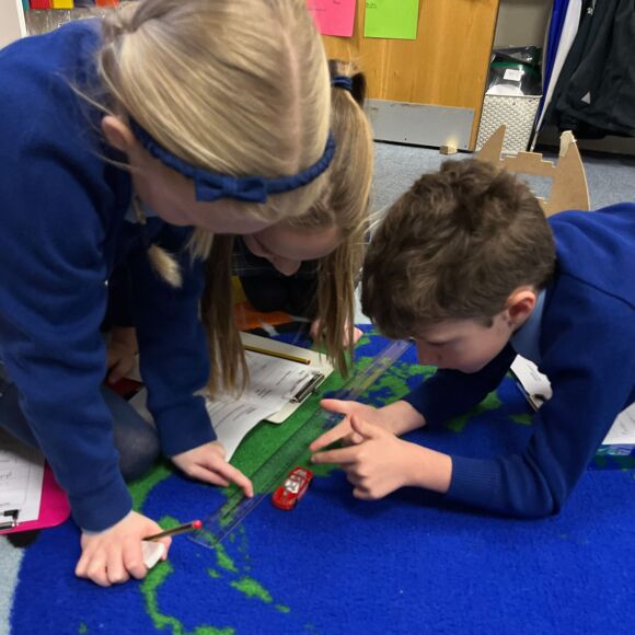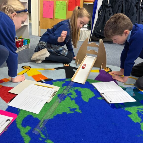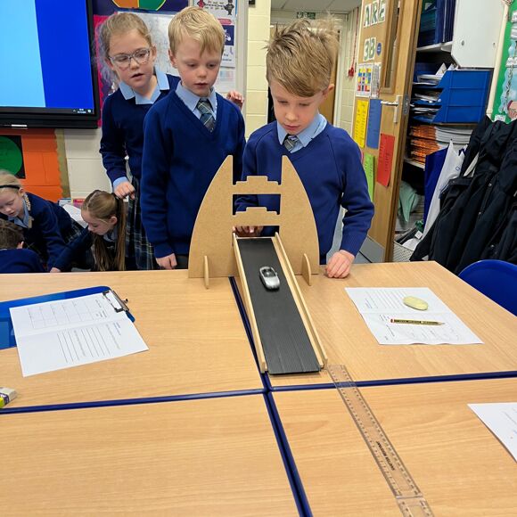 In Science, Year 3 have been investigating friction. The children had fun experimenting with different surfaces: carpet, plastic, card and sandpaper. They were able to write their own conclusion to describe which surface created the most friction and had lots of fun with cars and ramps.